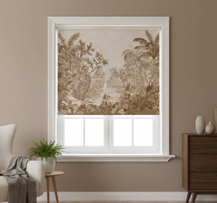 Transform your living space with the Blind beige tropical jungle views blind beige, which serves as a perfect decorative element. Its elegant design enhances any room, creating a serene atmosphere reminiscent of a tropical paradise. This blind brings a touch of nature indoors, inspiring a sense of tranquility and harmony. Whether you're looking to refresh your décor or make a bold statement, this roller blind is the ideal choice to elevate your home's aesthetic.