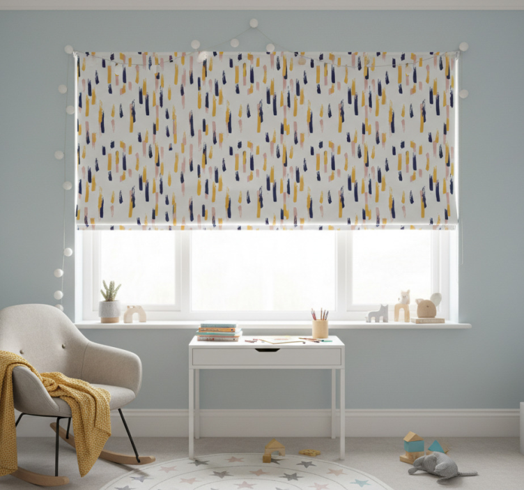 Reference: E6941The Blind children abstract modern strokes design is a captivating combination of bold colors and fluid forms, creating an inspiring visual experience. This remarkable roller blind features easy assembly in just 2 clicks, allows for effortless cleaning, and can be disassembled just as quickly. It also protects your space from direct sunlight while providing privacy when lowered. With the ability to regulate room temperature and enhance security, this product is an ideal choice for any home. It’s 100% customizable with various textures available, ensuring you can select the perfect level of light and privacy for your needs!