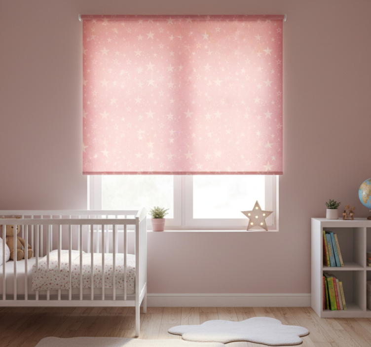 Reference: E7144Introducing our mesmerizing Blind children light pink stars on dark pink roller blind, designed specifically to create a soothing and enchanting atmosphere for young ones! This delightful design features a beautiful contrast of light pink stars scattered across a rich dark pink background, ensuring it captivates the imagination of children. The elements of easy assembly in just two clicks and easy cleaning make it a practical choice for busy parents while adding a touch of whimsy to any room!
