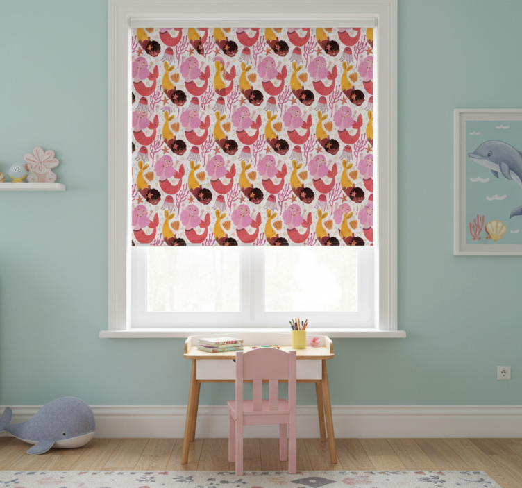 The Blind children mermaid child cartoon smiling blind children roller blind is perfect for creating an inspiring and joyful atmosphere in your child's bedroom or play area. Its vibrant design and cheerful imagery will spark creativity and imagination, transforming the space into a magical underwater world. By incorporating this roller blind into your decor, you are not just adding a functional item, but also a piece of art that encourages happiness and warmth for your little ones!
