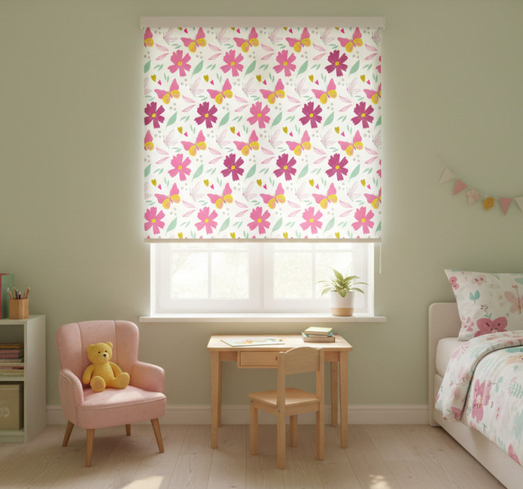 Transform your child's room with our Blind children pink and yellow flower butterfly pattern blind children, an enchanting addition that enhances decor while inspiring creativity! This design not only captivates the imagination but also creates a serene environment that fosters relaxation and play. Let the vibrant colors uplift spirits and stimulate young minds, making it a perfect choice for nurturing creativity and joy!