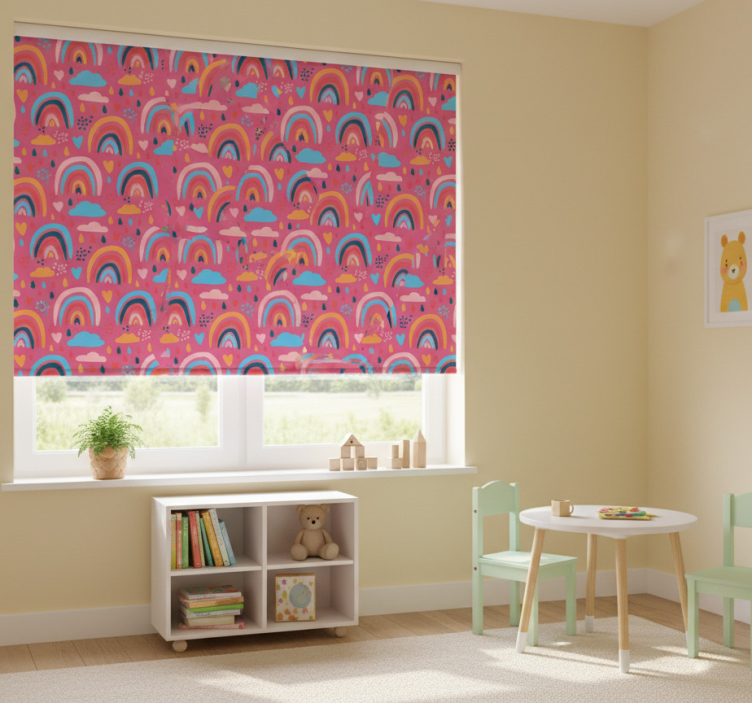 Reference: E6809Introducing our vibrant Blind children playful rainbow designs, specially crafted to enhance the visual experience for children. This delightful design features a beautiful array of colors, including soft blues, bright yellows, and cheerful reds, creating a joyful ambiance. The playful patterns encourage creativity and imagination, making it a perfect addition to any child's room. With easy assembly in just 2 clicks and quick cleaning features, this roller blind brings both functionality and fun into your space!
