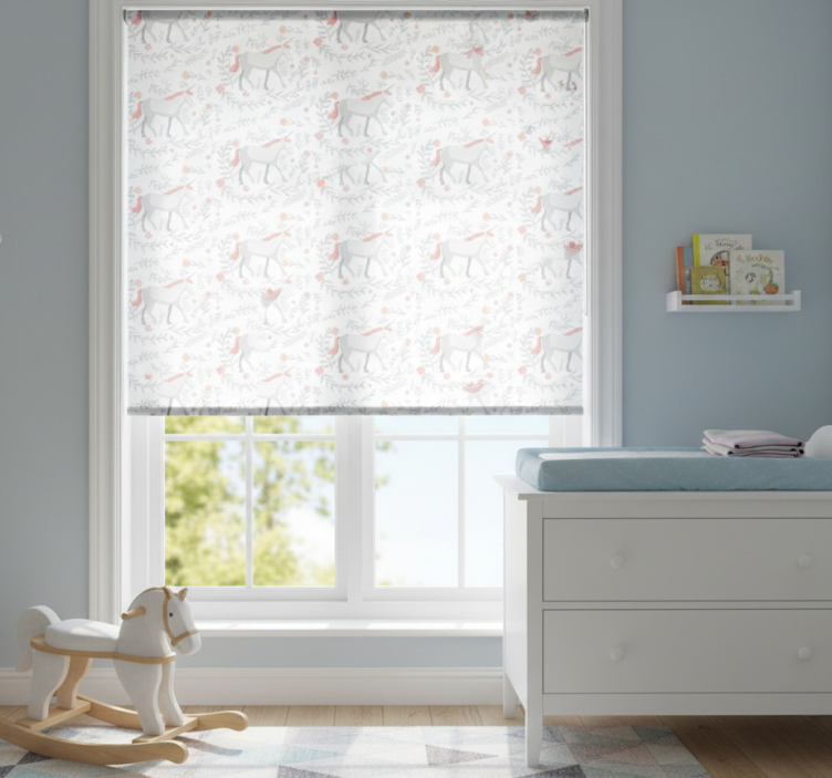 Reference: E7044Introducing our enchanting Blind children unicorn pattern with leaves roller blind, a delightful design that combines whimsical unicorns with vibrant leaves, creating a magical atmosphere in any space. This charming pattern not only captivates the imagination of children but also adds a touch of nature to your home. The design is characterized by its playful aesthetics and vibrant colors, making it a perfect choice for enriching the decor of a child's room!