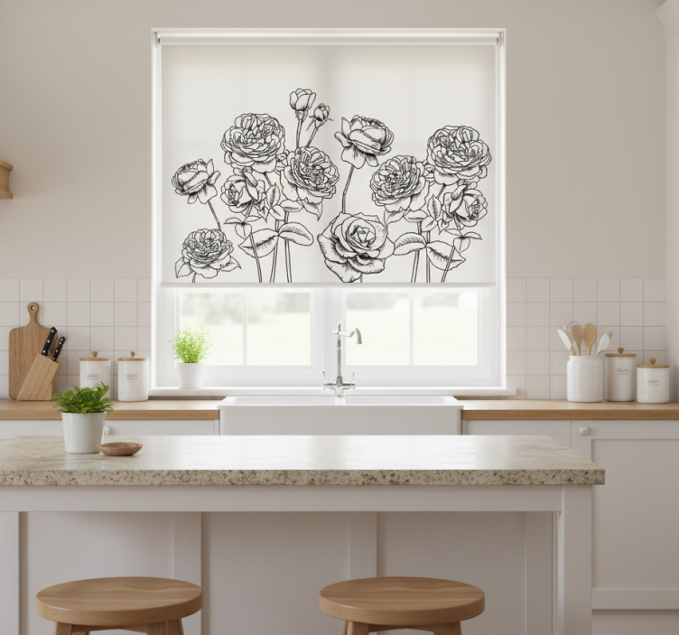 Blind kitchen black and white hand drawn roses