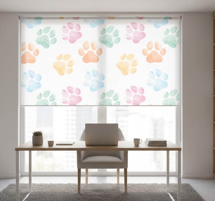 Reference: E7393Introducing our stunning Blind office pastel pet paws, a delightful addition that brings charm to any space! This unique design features adorable pastel pet paw prints against a soft background, creating a harmonious blend of playfulness and sophistication. The roller blind not only enhances your decor but also offers practical benefits that make it a must-have in your office or home.
