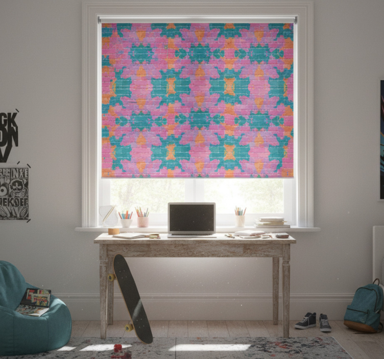Reference: E7506Introducing our stunning Blind teens graffiti sprayed brick wall design that captures the vibrant energy of urban art! This striking design features a unique blend of bold colors, intricate patterns, and an edgy graffiti style that transforms any space into a lively atmosphere. The graffiti sprayed effect on a brick wall backdrop adds a sense of depth and character, making it a perfect addition to modern interiors that crave a touch of creativity and individuality!