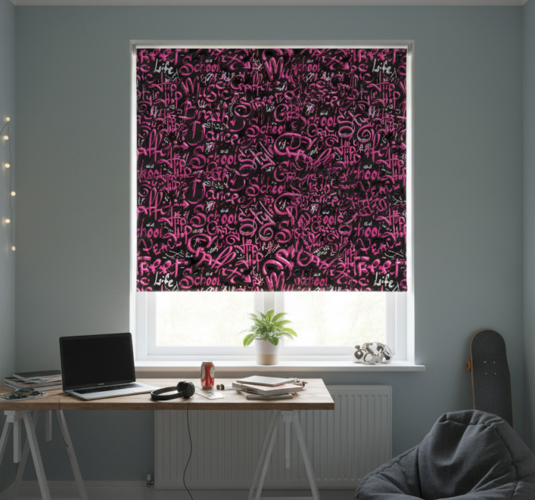 The Blind teens pink and black graffiti design blind teens is more than just a window treatment; it’s a way to inspire creativity and individuality in your living space! With its bold colors and eye-catching patterns, this roller blind transforms any room into a lively sanctuary. It encourages self-expression and adds a modern touch that resonates with the vibrant energy of today’s youth. Elevate your home decor and let your personality shine through with this exceptional design!