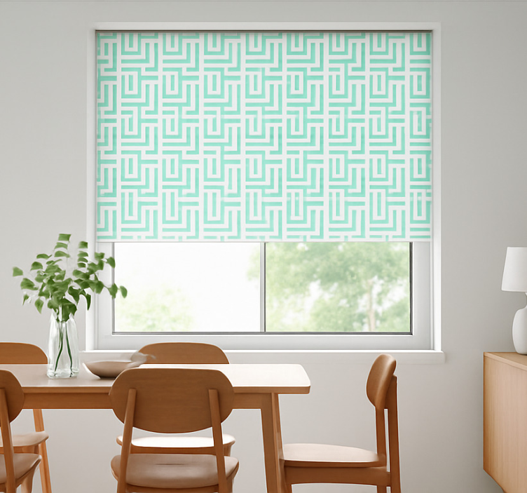 Embrace the beauty of our Blue geometric squares effect dining room blind and elevate your home décor! This striking blind serves as a focal point, bringing energy and vibrancy to your dining room while ensuring privacy and light control. Its unique design complements various interior styles, making it a perfect choice for those looking to create an inviting atmosphere.