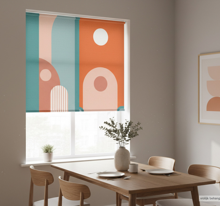 The Dining room blind cheerful wallpaper design dining room blind is an ideal choice for anyone looking to elevate their interior decor. Its lively patterns and colors create a joyful ambiance, making your dining area inviting and warm. Imagine hosting friends and family, surrounded by an uplifting environment that sparks conversation and joy! With its customisable measurements and stylish textures, this blind not only beautifies your space but also adds a functional element that adapts to your lifestyle.