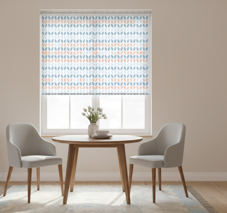 Reference: E6738Introducing our stunning Dining room blind in nordic vertical arrow style, a perfect blend of modern aesthetics and functionality! This unique design features a sleek vertical arrow pattern that adds a touch of elegance to your interiors. Its easy assembly in just two clicks and effortless cleaning make it a practical choice for any home. With the ability to provide privacy when lowered and regulate room temperature, this roller blind not only enhances your decor but also protects your space from direct sunlight. Experience the perfect balance of style and utility!