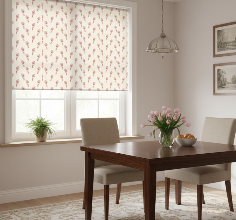 Transform your space with the Dining room blind with small pink tulips pattern dining room blind, designed to elevate your home’s aesthetic effortlessly. The delicate tulip design brings a touch of nature indoors, inspiring warmth and joy in your dining room. This blind not only adds beauty but also serves practical purposes, ensuring your space is both stylish and functional.