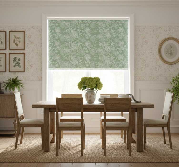 Green floral grandmillenial style dining room blind