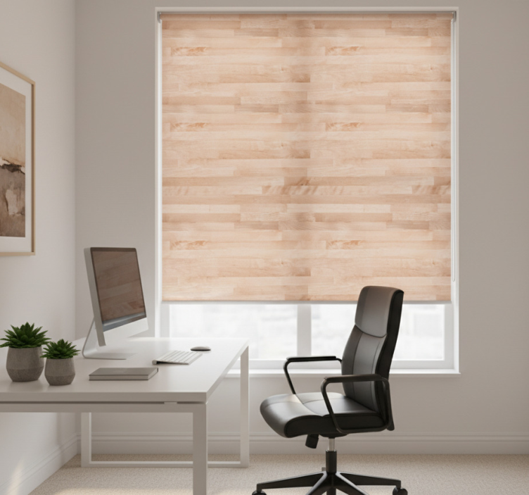 Reference: E6206The Home office blind elegant brown wooden plank showcases a stunning design that seamlessly blends functionality with aesthetic appeal. Crafted with high-quality materials, this roller blind features an elegant brown wooden plank style that adds warmth and sophistication to any home office. Its easy assembly in just 2 clicks and simple cleaning process ensure that your space remains pristine while providing the necessary privacy and light control.