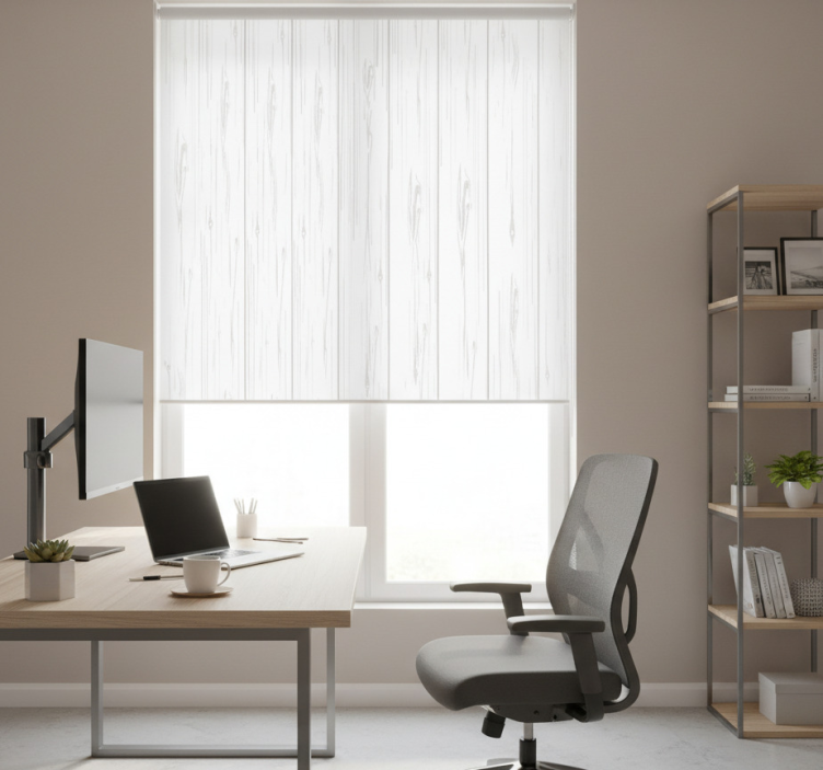 Installing the Home office blind in modern rustic white wood texture home office blind is a breeze! With our easy two-click assembly process, you can have your new blind up and ready to use in no time. Follow the simple instructions included in the package, and enjoy the stylish upgrade to your home office.