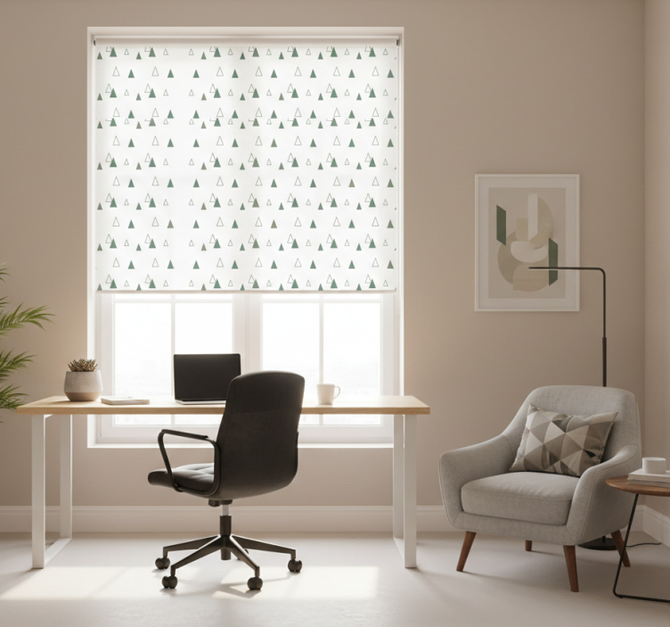 The Home office blind in triangles nature colors home office blind is more than just a window covering; it is a statement piece that elevates your space. Imagine working in an environment that inspires creativity and productivity! With its beautiful geometric design and nature-inspired hues, this blind perfectly complements any decor, making your home office a delightful place to be.