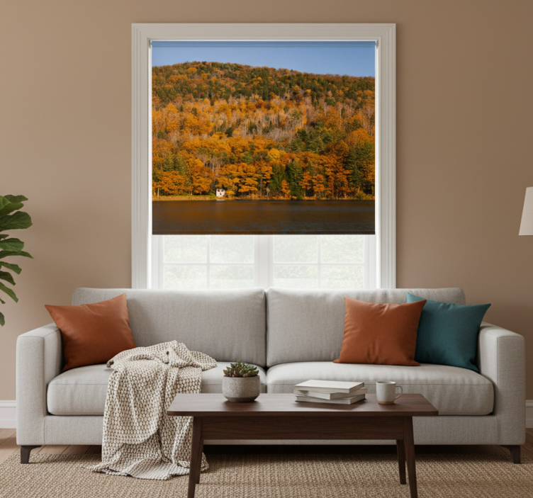 Living room blind lake and golden trees design