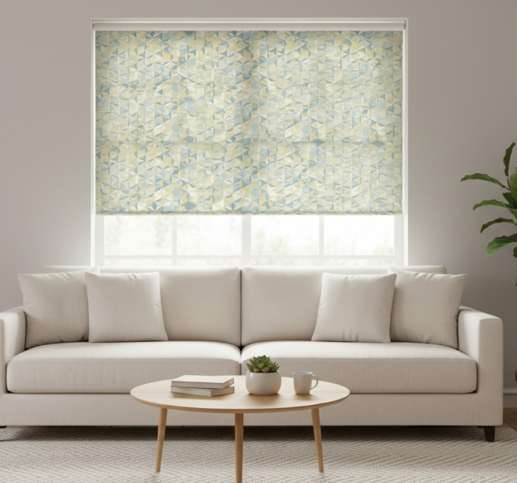 The Modern blind in beige blue and yellow geometric modern blind is an exceptional choice for decorating your home. Its vibrant colors and unique geometric patterns add a touch of sophistication and cheer to any room. Imagine transforming your living space into a stylish haven where light dances through the beautiful design, creating an inviting atmosphere! This modern blind not only elevates your interior decor but also serves practical purposes, making it a must-have for your home.