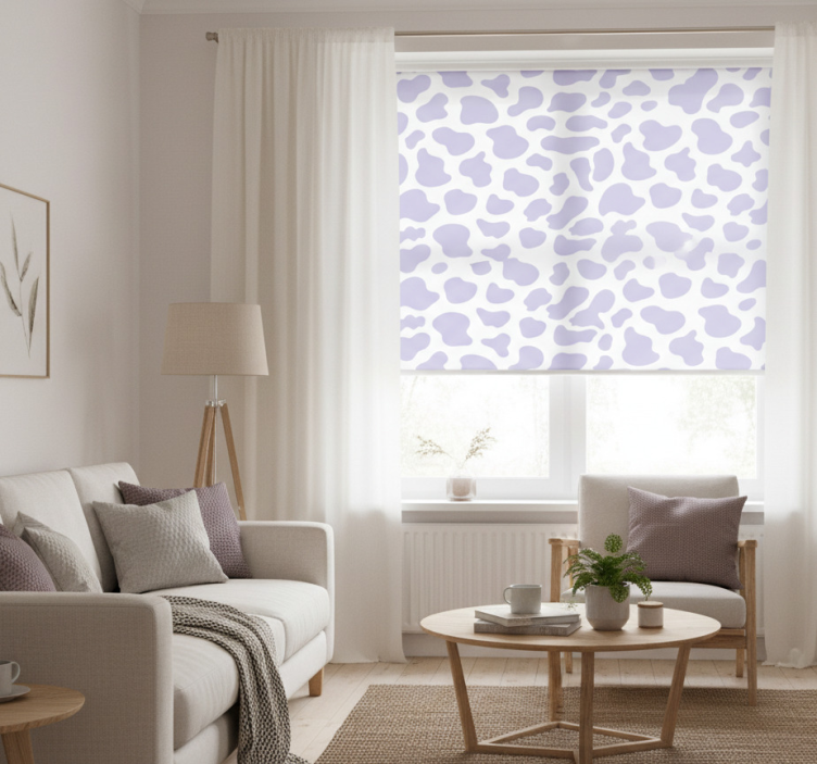 Reference: E7813Introducing our Modern blind in purple cow print, a stunning blend of contemporary design and playful style! This eye-catching roller blind features a vibrant purple cow print that transforms any space into a lively haven. With its easy assembly in just 2 clicks, effortless cleaning, and easy disassembly, this blind not only enhances your decoration but also offers practical benefits. Enjoy the perfect balance between light control and privacy, making your living area as inviting as it is functional!