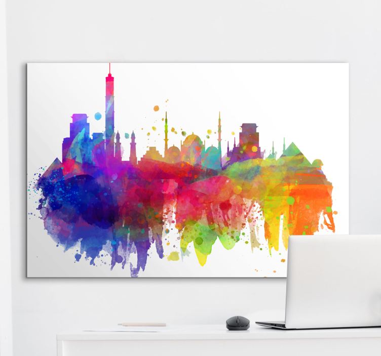 Immerse yourself in the vibrant essence of urban life with our Cityscape wall art colorful urban skyline. This stunning design captures the beauty of towering skyscrapers and blends it with an abstract style. A lively splash of color created through watercolour techniques brings the artwork to life, making it an ideal addition to any modern space. The painting showcases a breathtaking artistic interpretation of a city skyline, enhancing your wall with its artful charm.