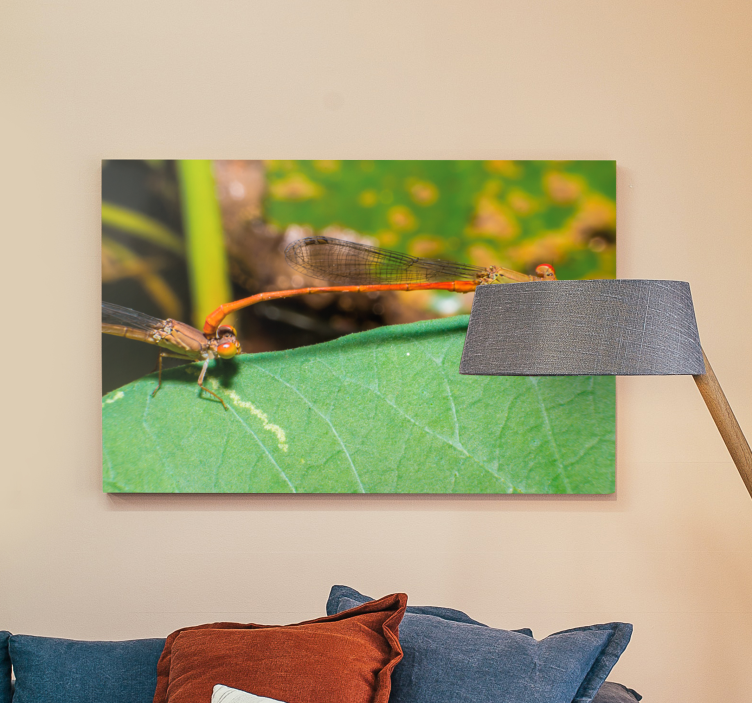 Introducing our stunning Dragonfly canvas pair of dragonflies, a breathtaking piece that beautifully captures the essence of nature. The design showcases intricate details of dragonflies resting delicately on vibrant green leaves, masterfully photographed in a close-up style that brings the outdoors into your home. This canvas print is not just a depiction of an insect; it’s a celebration of life, vibrancy, and the delicate balance of nature!