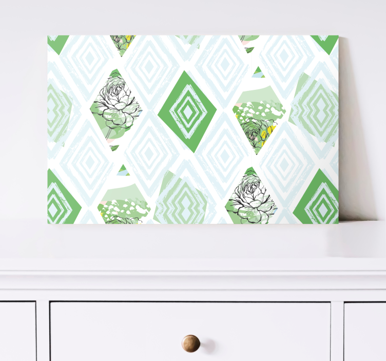 Introducing our stunning Flowers canvas geometric succulent design, a captivating blend of nature's beauty and abstract artistry! This enchanting piece features vibrant flowers arranged in geometric shapes, including diamonds and rhombuses, in lush shades of green. The design effortlessly brings a touch of nature into your space, creating an eye-catching focal point that radiates joy and tranquility.