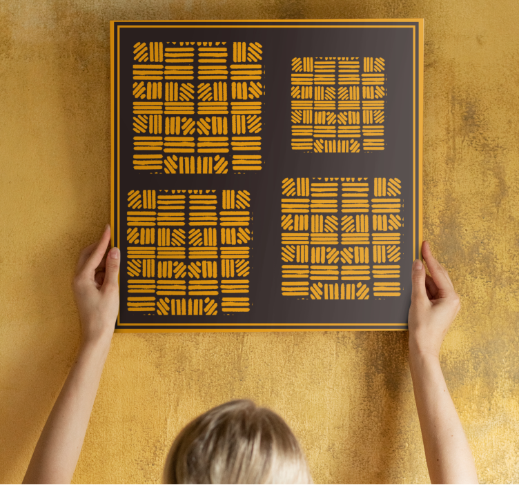 Discover the captivating allure of our Modern canvas art geometric design arrangement. This stunning piece features a harmonious blend of African influences, showcasing a rich palette of gold, golden, and yellow hues. The intricate lines and shapes create an abstract visual experience that draws the eye, while the geometric patterns evoke a sense of order and beauty. Framed with care, this artwork transforms any space into a gallery of inspiration.