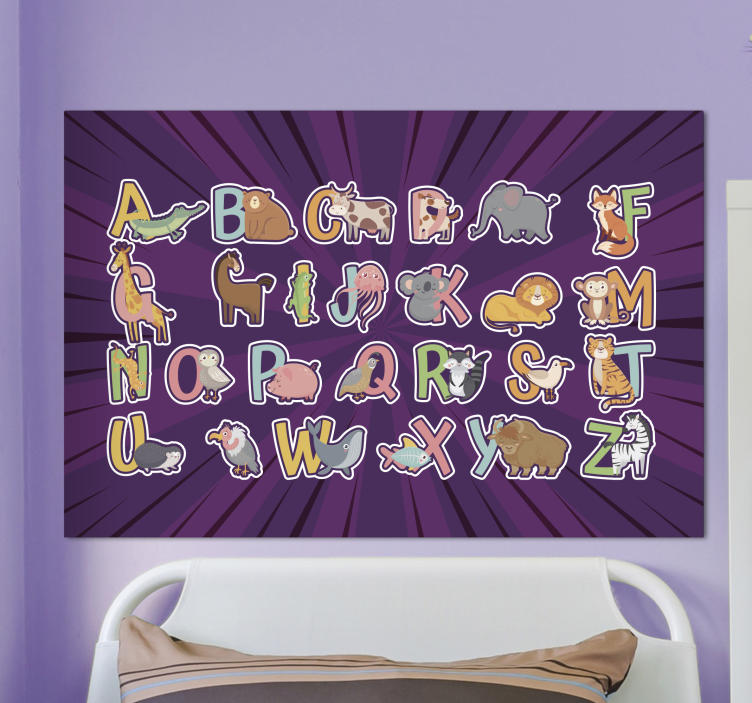 Reference: Q6433Featuring a playful array of animals associated with their corresponding letters, this design fosters early learning. Each character is vibrantly illustrated, capturing attention and encouraging engagement. The background's dynamic pattern enhances the lively atmosphere, making it an ideal choice for children's spaces.
