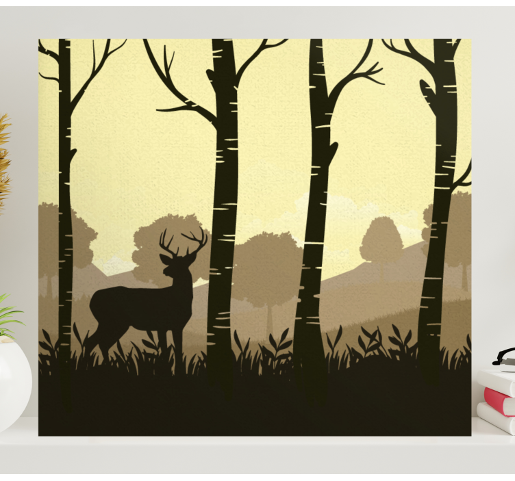 Immerse yourself in the beauty of nature with our Stag canvas silhouette of a stag among trees. This stunning design features a majestic stag gracefully positioned among trees, grass, and foliage, creating a breathtaking portrayal of wildlife in harmony with its forest surroundings. The silhouette captures the essence of the outdoors, inviting you to experience the tranquility and wonder of the natural world right in your home.