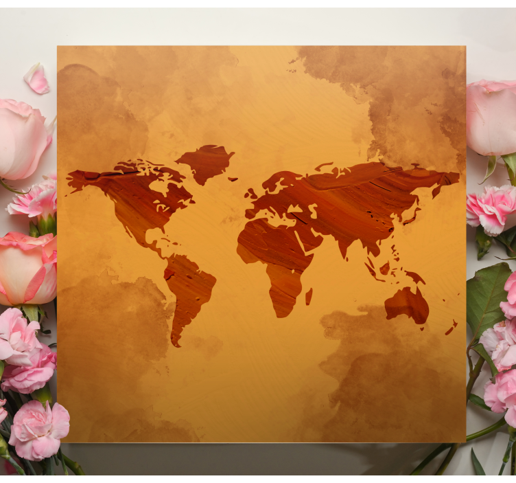 Reference: Q6671The design features a vintage map of the world, highlighting continents with a textured finish. The background showcases soft, earthy tones that complement the geographical outlines, creating a harmonious visual. This map serves as an elegant tribute to exploration and global awareness.