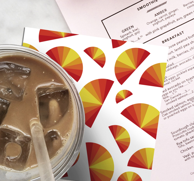 Introducing our stunning Coasters with geometric fan designs, where vibrant patterns merge with artistic flair! Each coaster features an intricate blend of semicircles, stripes, and geometric shapes, creating a visual experience reminiscent of a sunset. The textures and colors harmoniously interact, making them not just functional, but a beautiful addition to your decor!