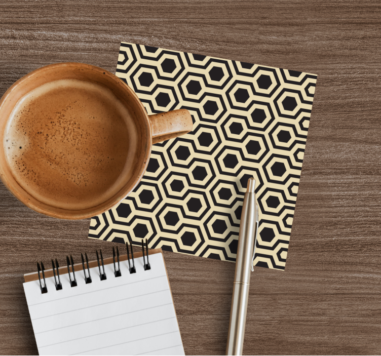 Introducing our stunning Honeycomb pattern design coasters, featuring a captivating geometric display of hexagons that effortlessly blend black and beige tones. The modern, repeating pattern adds a touch of sophistication to any table setting, making it a stylish addition to your home. Whether you’re hosting a dinner party or enjoying a quiet evening, these coasters will elevate your decor!