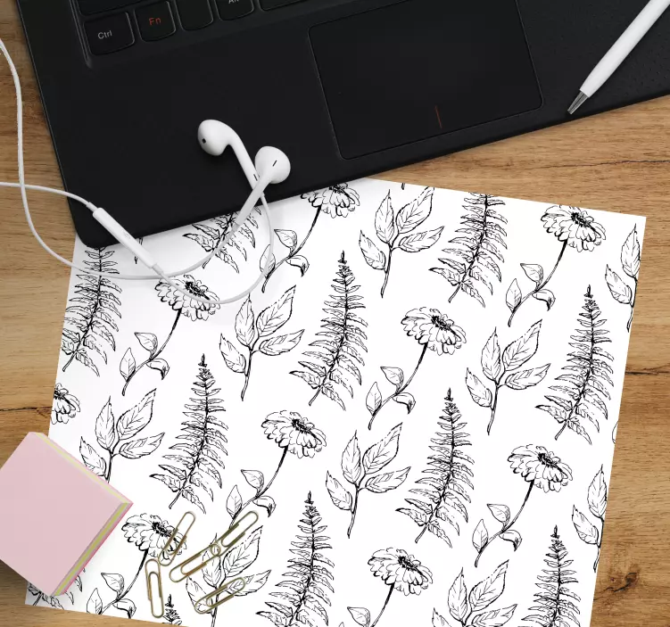 Introducing our stunning Mouse pad pattern floral sketches design, a beautiful blend of black and white graphics that brings a touch of nature into your workspace! This exquisite design features delicate flowers, leaves, and intricate hand drawings of plants, showcasing a minimalistic and botanical aesthetic. The repeating pattern captures the essence of floral beauty, making it a perfect accessory for any desk.