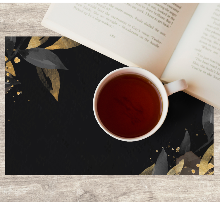 Introducing our Elegant placemats with sophisticated leaf designs, perfect for those who appreciate a touch of glamour in their dining experience! The stunning design features a rich black background adorned with artistic, hand-painted leaves in beautiful gold and watercolor accents. This floral design effortlessly combines elegance and minimalism, making it a sophisticated addition to any table setting.