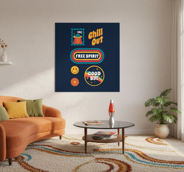 Reference: G824Step back in time with our 70's fun and chill living room poster, a vibrant representation of retro aesthetics! This eye-catching design features a blend of nostalgic patterns, lively colors, and playful illustrations that capture the essence of the 70s. Crafted on high-quality 180g/m2 grammage paper, this semi-matt finish poster ensures high color intensity without reflections, making it an ideal addition to any living space!