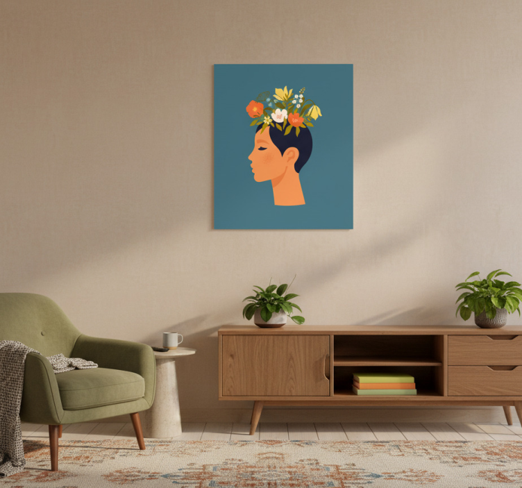 Reference: G968Introducing our stunning Flower poster abstract woman on blue background, a visual masterpiece that captures the essence of artistic expression. This captivating design features a striking blend of vibrant colors and abstract elements, showcasing a woman surrounded by floral motifs on a serene blue backdrop. The poster is crafted with a 180g/m2 grammage for durability, a semi-matt finish that minimizes glare, and high color intensity to ensure it stands out in any space!