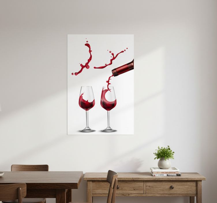 Reference: G653Introducing our stunning Kitchen poster dynamic wine splash, a captivating addition to any culinary space! This poster features a vibrant design that portrays a dynamic splash of wine, showcasing high color intensity that brings life to your kitchen. Crafted with a 180g/m2 grammage for durability, it has a semi-matt finish that eliminates reflections, ensuring that the artwork shines in any lighting.