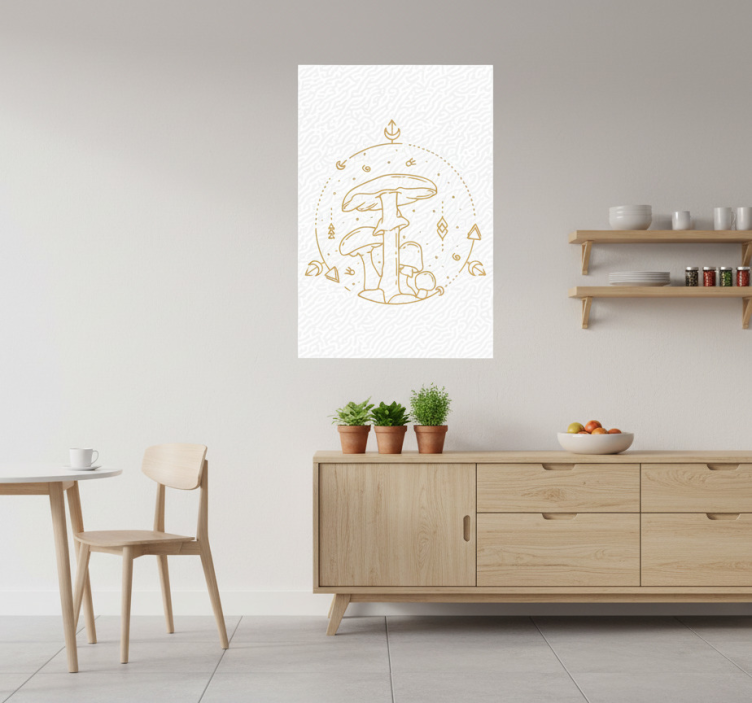 Reference: G654Introducing our stunning Kitchen poster geometric mushroom line art, a delightful blend of modern aesthetics and playful whimsy. This design features an intricate geometric interpretation of mushrooms that brings a touch of nature into your home. With its semi-matt finish, high color intensity, and 180g/m2 grammage, this poster is perfect for vibrant display without any reflections, enhancing your kitchen's visual appeal.