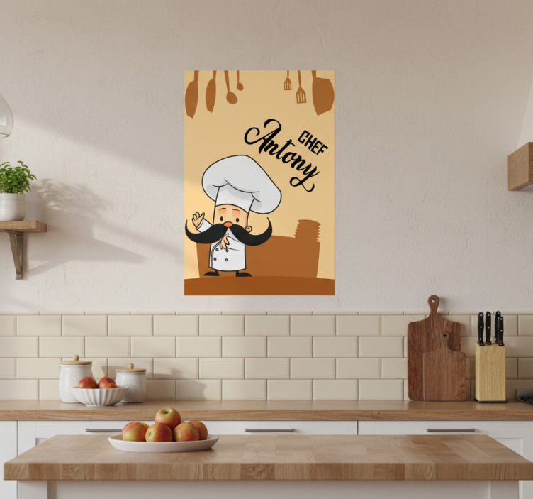 Reference: G639Introducing our stunning Kitchen poster personalized chef artwork, a perfect blend of creativity and culinary passion! This vibrant design showcases high color intensity, ensuring that every detail pops beautifully against any backdrop. With a semi-matt finish that eliminates reflections, it's not just a piece of art but a statement of your love for cooking. Made with a robust 180g/m2 grammage, this poster is ideal for any kitchen setting, offering durability and charm in equal measure!