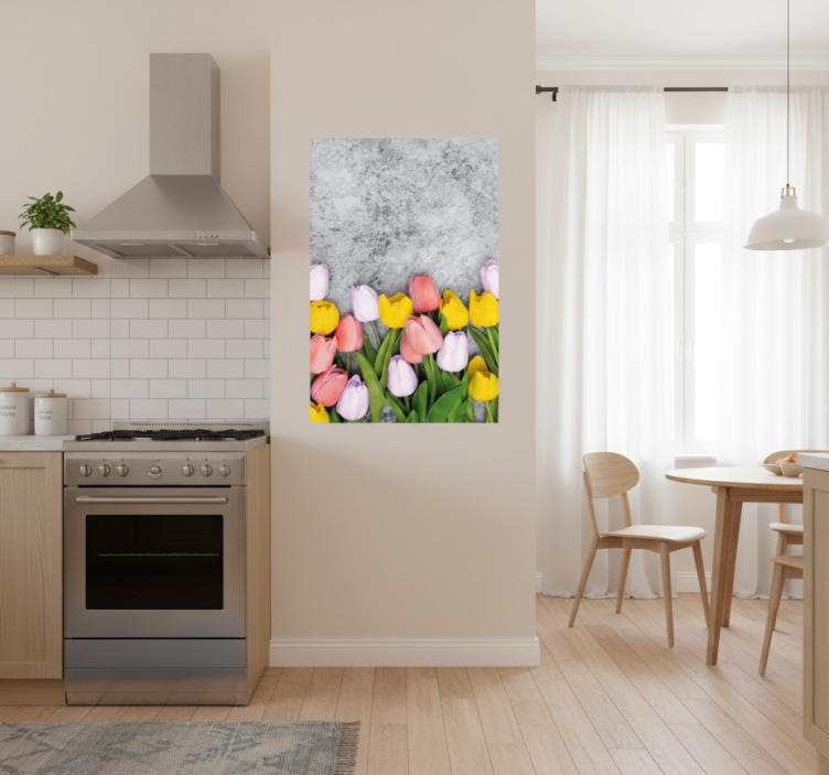 The Kitchen poster with similar tulip flowers kitchen poster is not just a decoration; it's an inspiration! Imagine stepping into your kitchen and being greeted by the cheerful bloom of tulips, each petal whispering a story of spring and renewal. This enchanting piece transforms your kitchen into a sanctuary of warmth and creativity, making cooking and dining an even more delightful experience. Add a touch of nature to your walls and let the beauty of tulip flowers invigorate your culinary space!