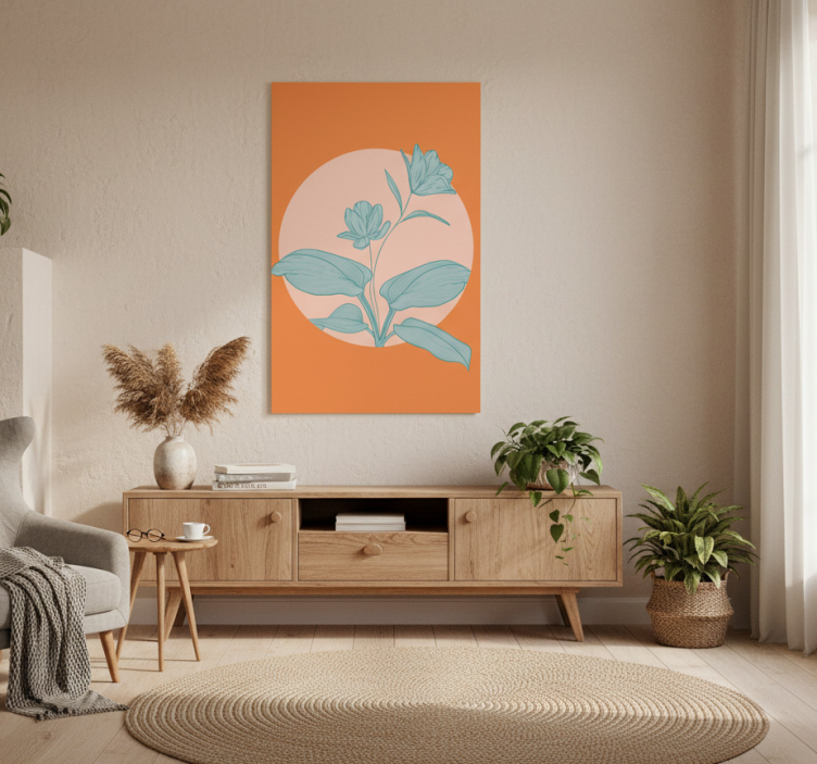The Living room poster blue flowers on orange shapes living room poster is perfect for infusing your home with creativity and style. Its unique design not only serves as a focal point but also encourages a sense of tranquility and inspiration. Elevate your living space effortlessly and let this artwork spark joy and conversation among family and friends!