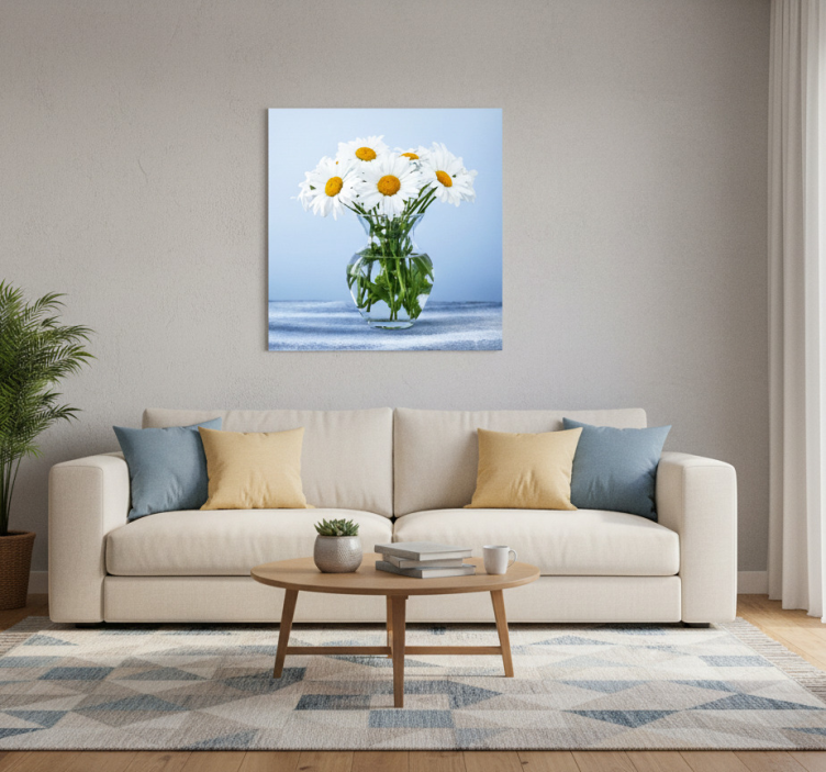 Transform your space with the Living room poster daisy flowers in glass pots living room poster that inspires joy and tranquility! This poster not only adds a touch of nature to your home but also uplifts your mood, creating a welcoming atmosphere. Imagine coming home to this vibrant display that sparks happiness and conversation!