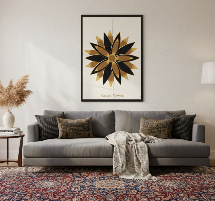 Living room poster golden flowers