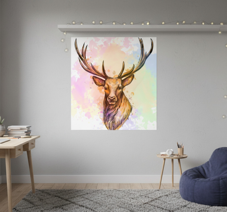 Reference: G780Introducing our stunning Living room poster paint splash stag artwork, a captivating masterpiece that brings life and vibrancy to any space! The design features a striking stag surrounded by a colorful paint splash effect, showcasing high color intensity on a semi-matt finish that eliminates reflections. Crafted on high-quality 180g/m2 paper, this artwork is perfect for those looking to enhance their living room with a touch of modern flair.