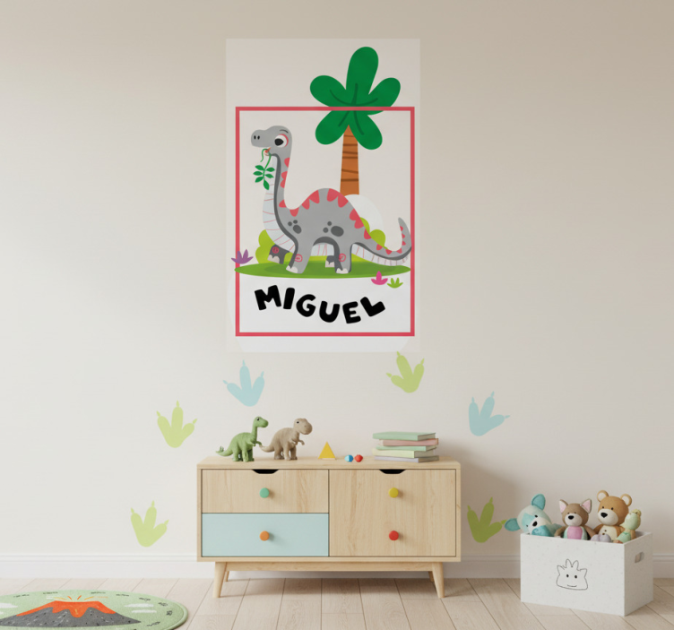 Step into a world of imagination with our Nursery poster gray long neck dinosaur art. This delightful design showcases a whimsical long-neck dinosaur in soft gray hues, perfect for creating a serene yet playful atmosphere in any child's nursery. The semi-matt finish brings out the high color intensity, ensuring that this charming piece stands out on your walls, while the 180g/m2 grammage ensures durability, making it an ideal choice for posters.