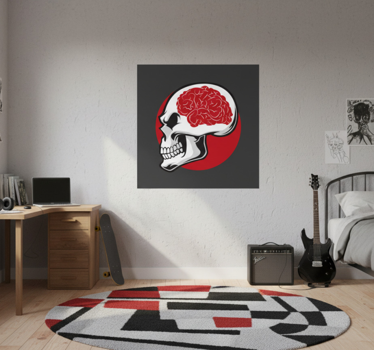 Reference: G729Introducing our striking Poster for teenager red skull with brain, a captivating design that combines edgy graphics with vivid color intensity! This poster features a semi-matt finish that eliminates reflections, making it a perfect choice for any teenager's room. With a grammage of 180g/m2, it's designed to be durable and eye-catching, ensuring that it stands out on any wall. Transform your space with this unique artwork that is sure to spark conversations and inspire creativity!