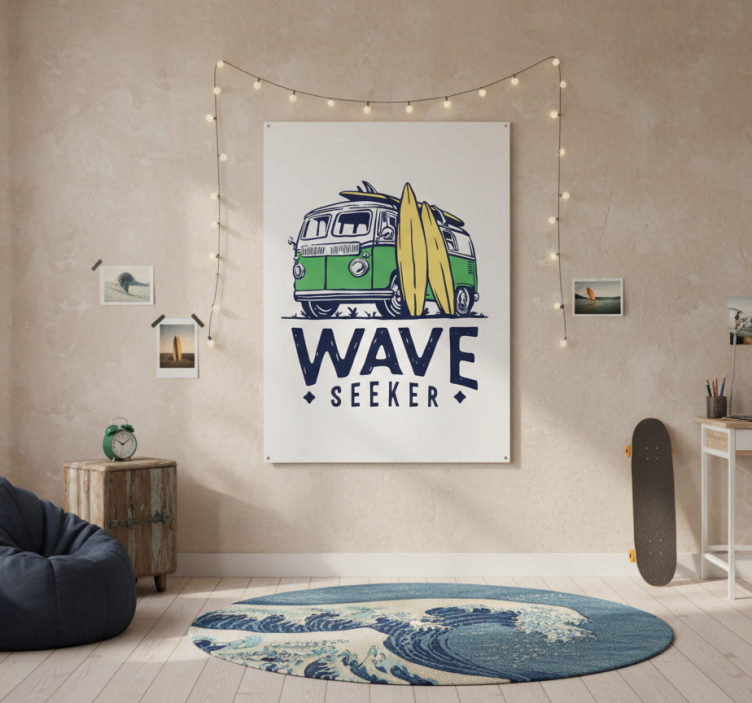 Reference: G725Introducing our vibrant Poster for teenager surfer van, a must-have addition to any young surfer's room! This stunning design showcases a lively surfer van against a backdrop of sun-soaked waves and sandy beaches, capturing the essence of a carefree, adventurous lifestyle. The poster features a 180g/m2 grammage, ideal for posters, with a semi-matt finish that prevents reflections and ensures high colour intensity, making it a perfect visual delight!