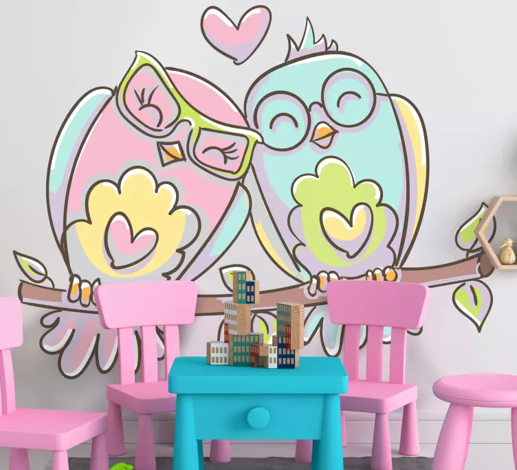 Introducing our delightful Bird sticker cute love birds design, featuring a charming illustration of adorable owls and love birds in soft hues of pink and blue. This happy and cute design is perfect for adding a touch of warmth to any space, making it an ideal choice for those who appreciate whimsical decor!