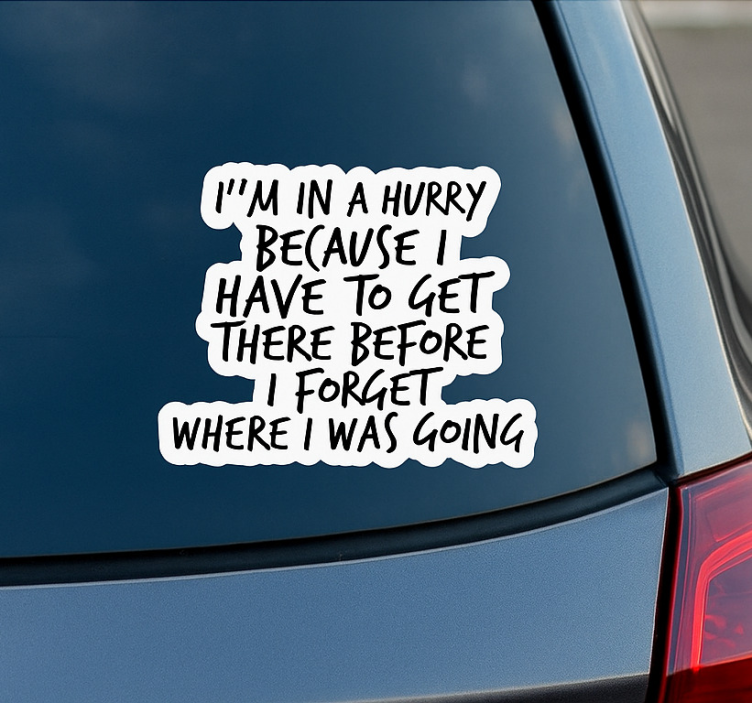 The Car sticker i'm in a hurry car sticker is not just a decorative item; it's a statement piece! Perfect for those who love to express themselves, this sticker transforms your vehicle into a canvas of creativity. It inspires others on the road and serves as a fun reminder to embrace life's fast pace. Decorate your car with this charming sticker and let your personality shine through every drive!