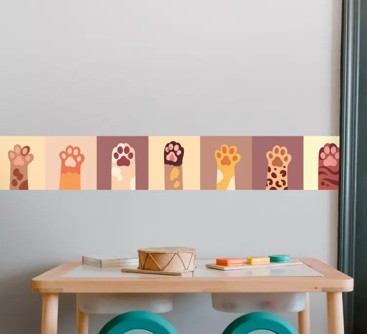 Reference: A53447A vibrant arrangement of various paw prints, showcasing different patterns and hues. This playful design captures the essence of playful pets, making it perfect for animal lovers wanting to add a whimsical touch to their space.