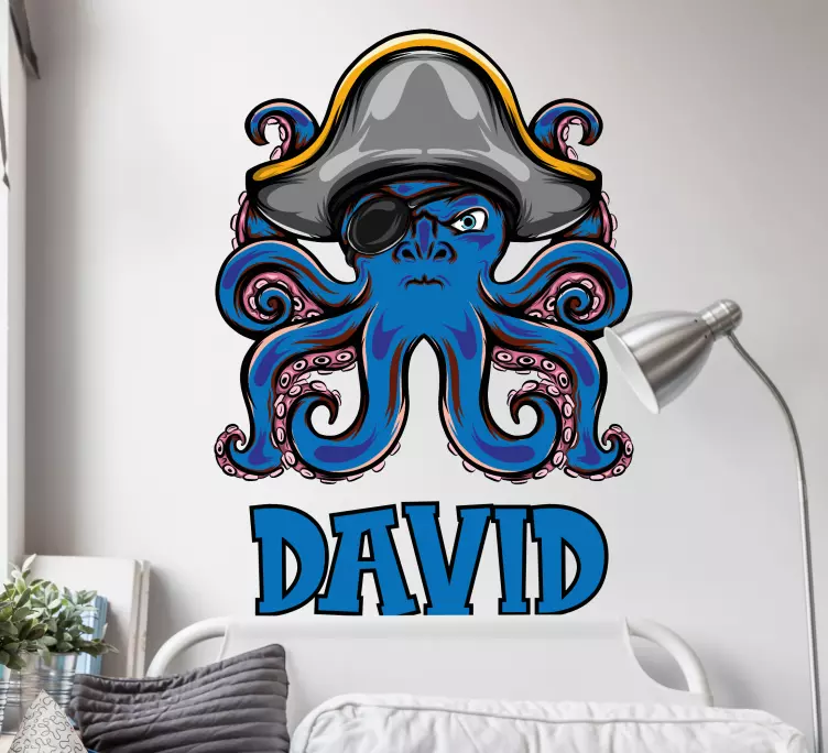 Reference: A48776A vibrant depiction featuring a pirate-themed octopus with an eye patch and a large hat. This whimsical character embodies a playful spirit, making it a fun addition to any space. The design can be personalized, adding a unique touch for the user.